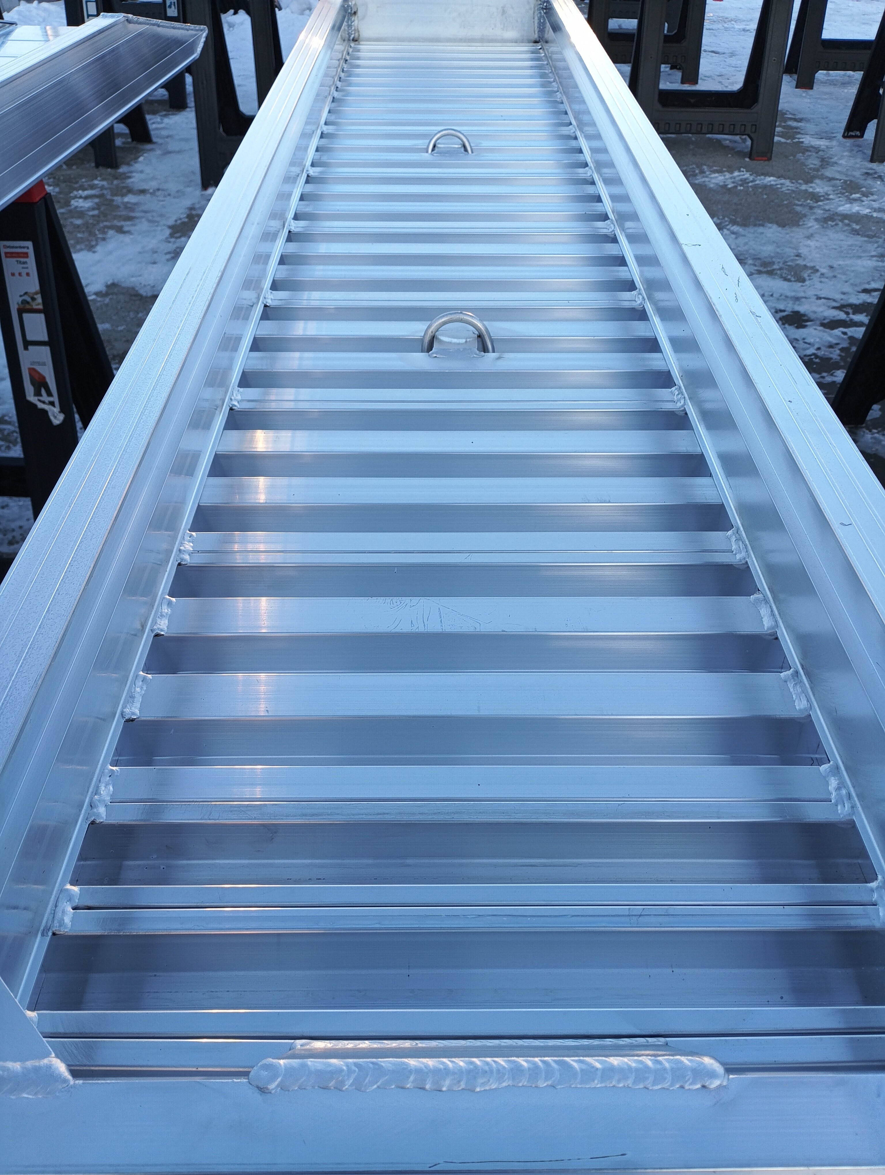 Robuste Bauweise: Speziell entwickelte Schweißnähte und hochwertigstes Aluminium sorgen dafür, dass unsere Rampen die Konkurrenz im Härtetest deklassieren.