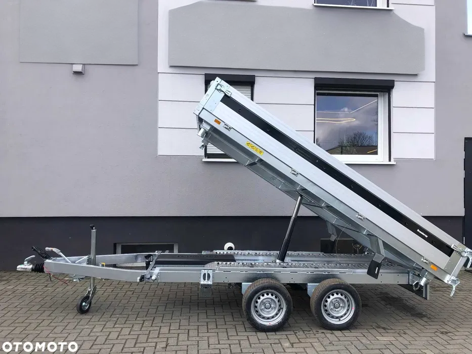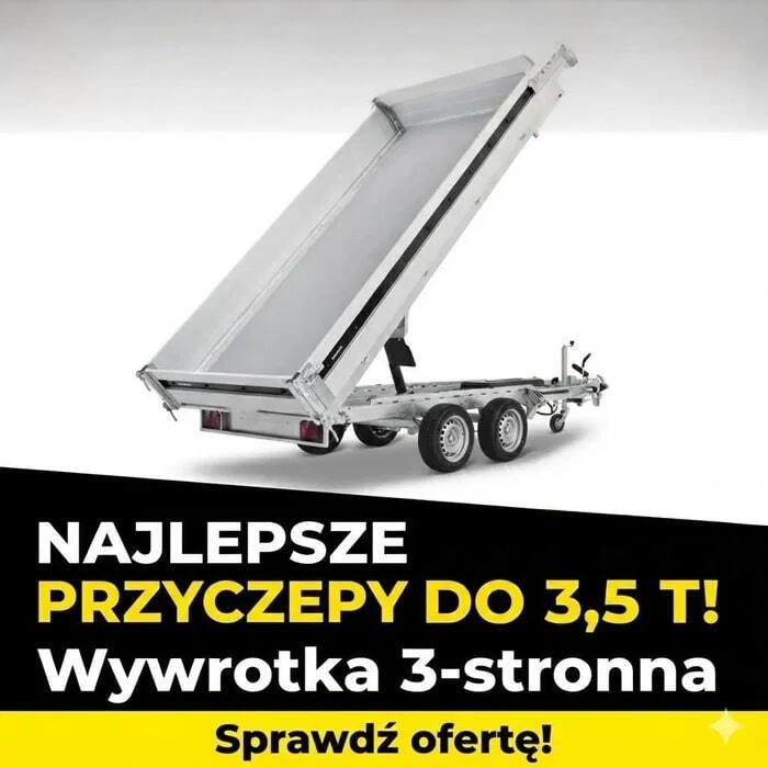 ✅ Wywrot 3-stronny: Sterowanie pilotem (elektro-hydraulika) – rozładowujesz bez wysiłku! ✅ DMC: 3500 kg (Ładowność aż 2740 kg) ✅ System Hybrydowy: Możliwość kiprowania ręcznego w razie rozładowania akumulatora. ✅ Konstrukcja: Stalowa podłoga ocynkowana ogniowo + aluminiowe burty (wszystkie otwierane i demontowane). ✅ Wymiary: 325 x 180 cm.